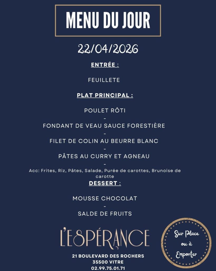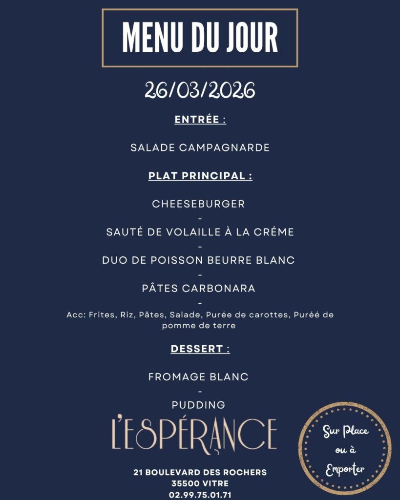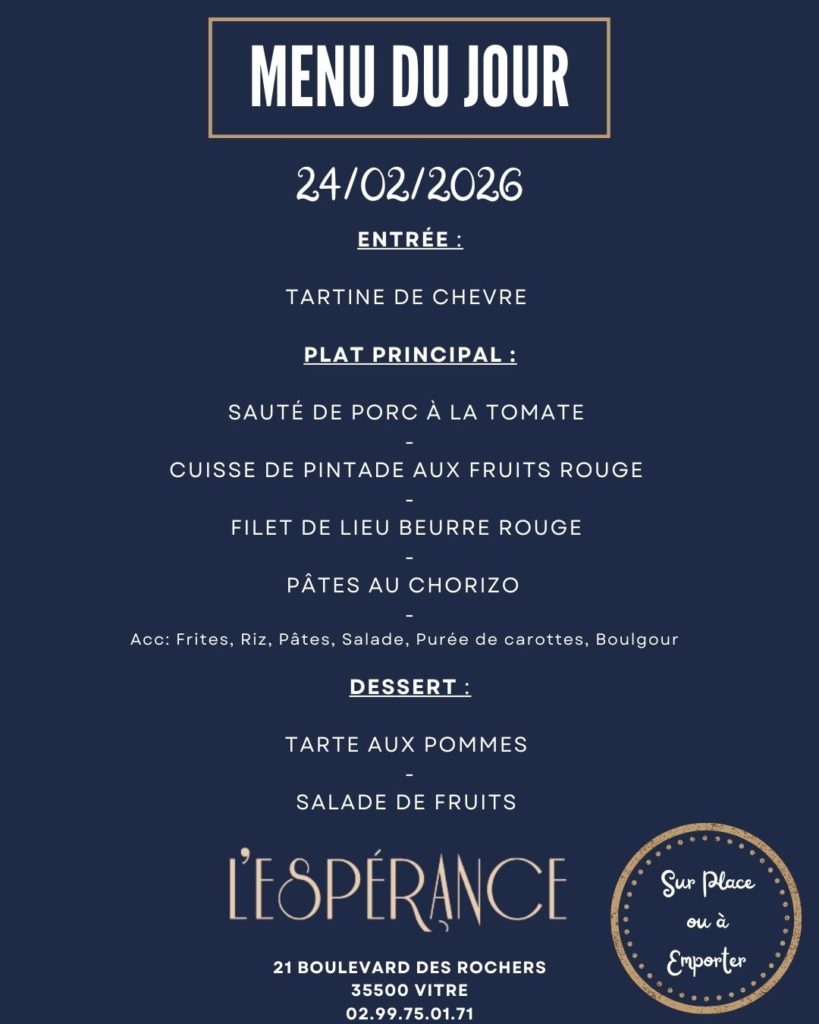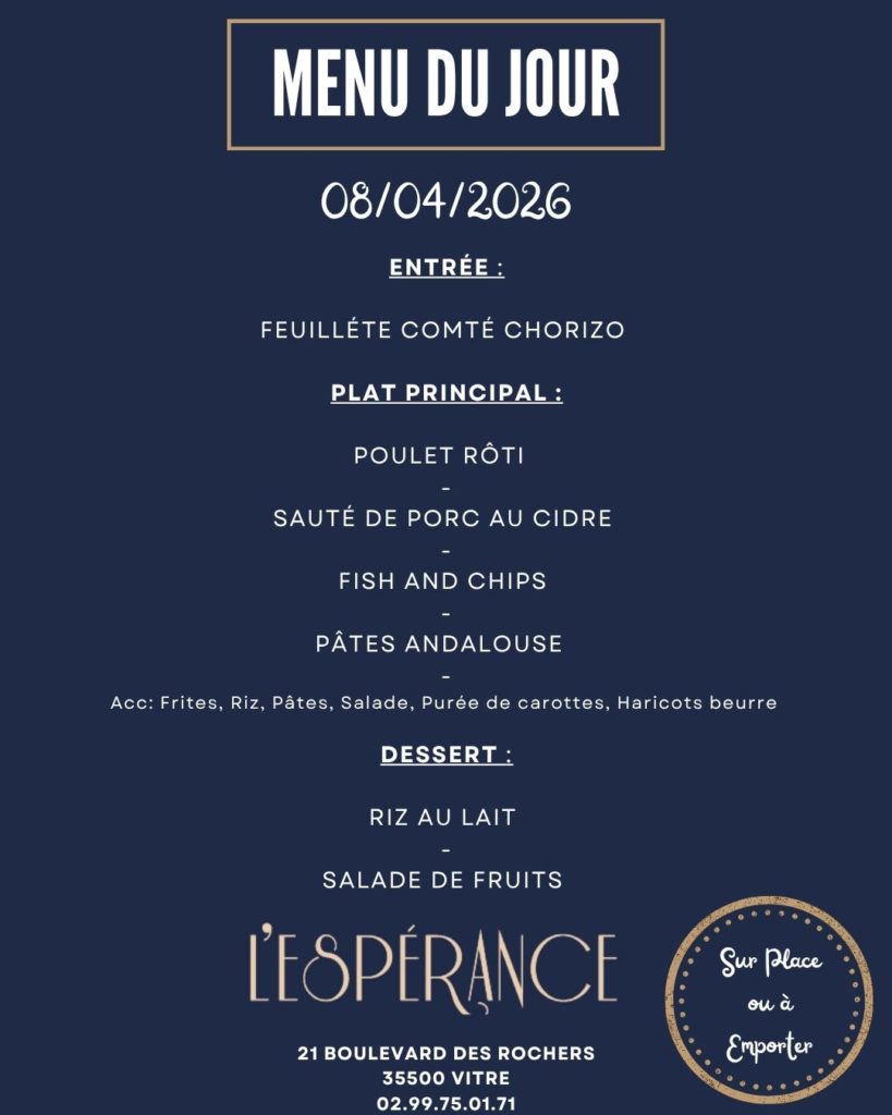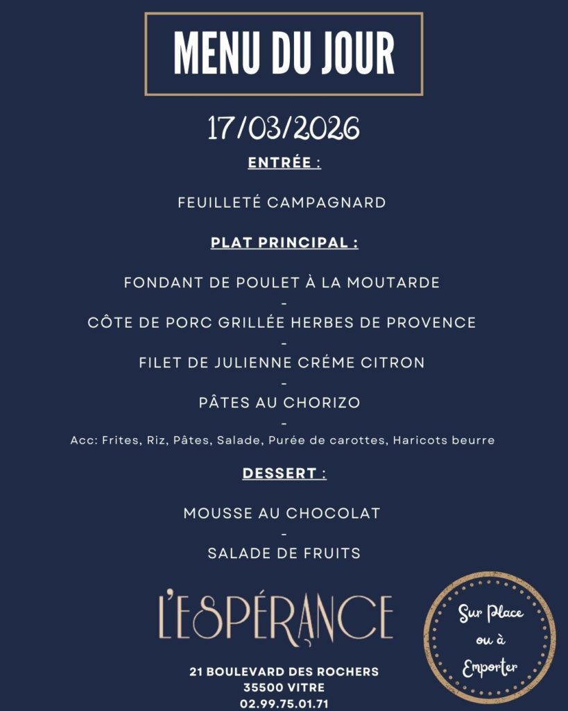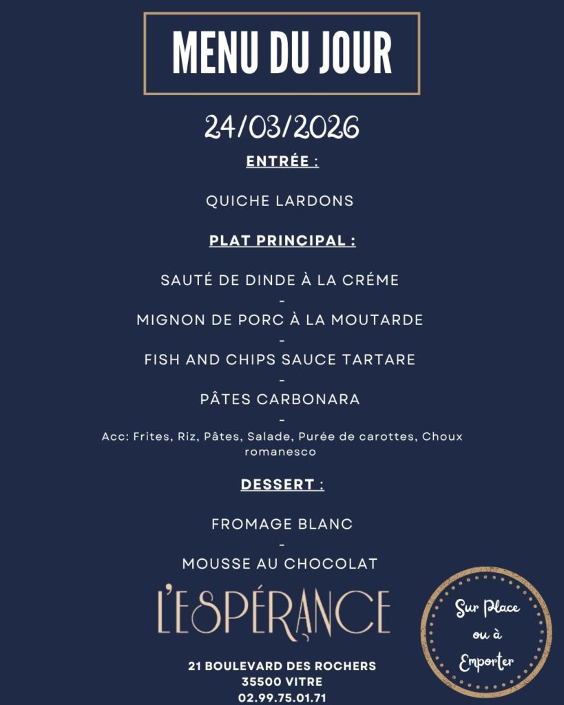 L'hôtel** restaurant l'Espérance vous accueille à Vitré, ville d'art et d'histoire. Situé près du Jardin des Plantes, vous êtes à 10 minutes à pied du centre-ville, de la gare et du Château de Vitré.